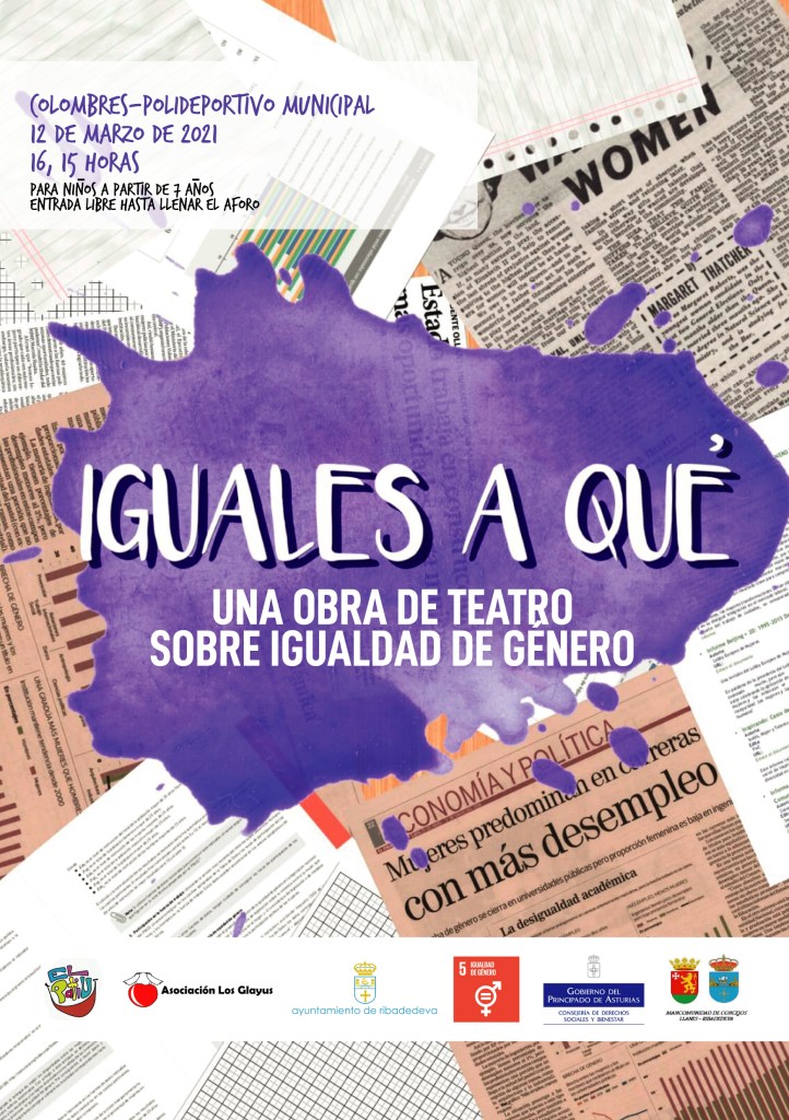 Dentro de la programación de los actos con motivo del Día de la Mujer 2021 el Polideportivo Municipal de Ribadedeva (Colombres) acoge el 12 de marzo de 2021 a las 16,15 h. una comedia teatral destinada al público familiar en la que se tratan con humor diferentes cuestiones de género. La actividad corre a cargo de la Asociación Los Glayus, que se ha ocupado de la dramaturgia y puesta en escena de los textos. La actividad está recomendada para niños a partir de 7 años y la entrada a la misma es gratuita teniendo en cuenta el cumplimiento de los aforos y medidas de seguridad Covid vigentes.