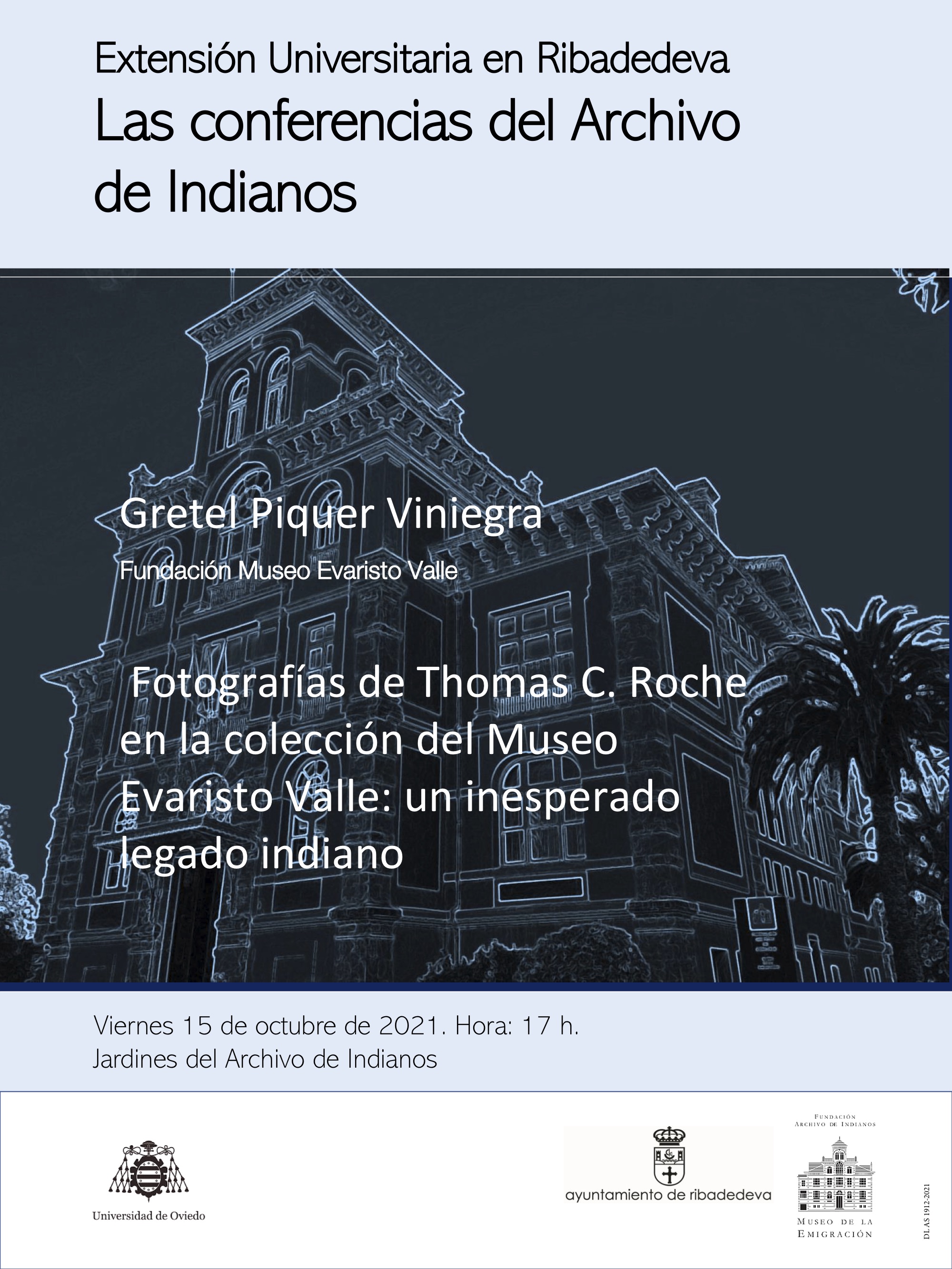 Fiel a su cita mensual regresa a Ribadedeva una propuesta cultural muy consolidada en las programaciones del municipio en los últimos años, “Las conferencias del Archivo de Indianos”. Puesta en marcha por la Universidad de Oviedo en colaboración con la Fundación Archivo de Indianos y el Ayuntamiento de Ribadedeva la actividad pretende generar conocimiento en torno al continente americano y sus vínculos históricos y culturales con nuestro país. En esta ocasión será Gretel Piquer, doctora en Historia del Arte por la Universidad de Oviedo, investigadora y responsable de Archivo y Documentación en la Fundación Museo Evaristo Valle la encargada de intervenir en la Quinta Guadalupe con su conferencia “Fotografías de Thomas C. Roche en la colección del Museo Evaristo Valle: un inesperado legado indiano.” La actividad tendrá lugar el viernes 15 de octubre en la sede de la Fundación Archivo de Indianos a las 17,00 h. con entrada libre hasta llenar el aforo del espacio.