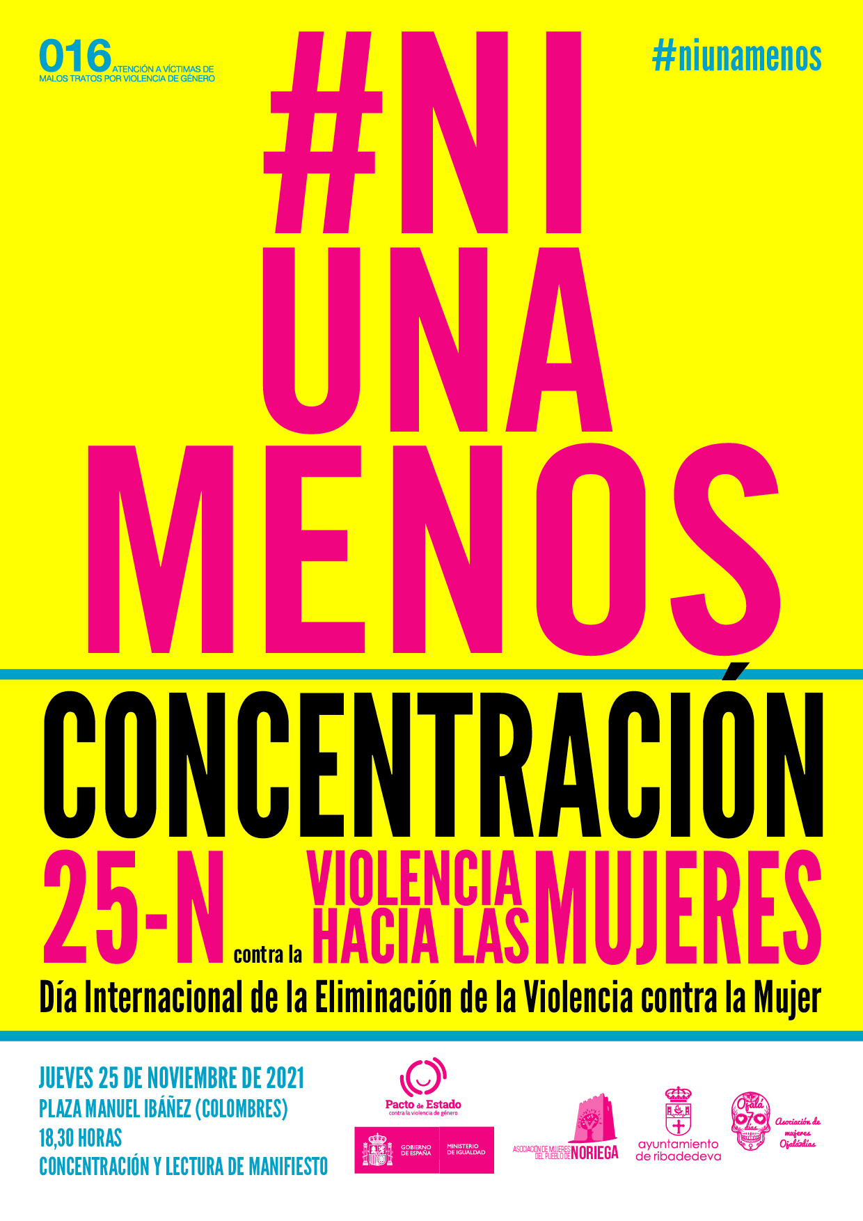 Con el objeto de denunciar juntos y juntas con nuestra presencia esta terrible realidad social que azota a todo el planeta el próximo jueves 25 de noviembre, Día Internacional de la Eliminación de la Violencia contra la Mujer, a las 18,30 h. la plaza del ayuntamiento acogerá una concentración, a la que se invita a acudir a todas las personas que deseen formar parte de este acto de repulsa y reivindicacion.