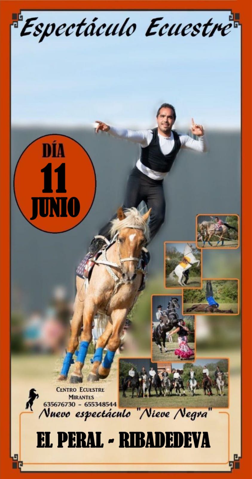 Y a partir de las 18,00 h. ese mismo escenario albergará uno de los platos fuertes de la jornada, el espectáculo ecuestre “Nieve Negra” a cargo del Centro Ecuestre Mirantes, que ofrecerá a los visitantes un gran espectáculo ecuestre con ejercicios de doma y dominio de caballos, se podrá disfrutar de la belleza y elegancia de las montas, así como el talento y destreza de los jinetes. Este centro ecuestre, que viene de la provincia de León tiene una amplísima trayectoria en el mundo del caballo y desarrolla a lo largo del año exhibiciones, cursos, rutas…