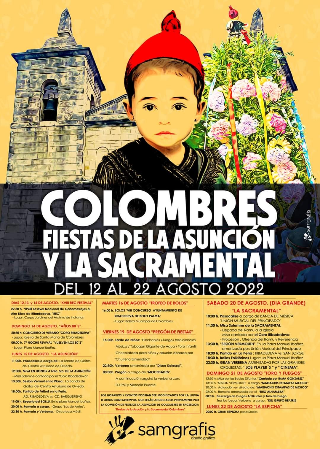 Después de dos años de parón motivados por la pandemia, el próximo lunes 15 de agosto comienzan las tradicionales fiestas de Colombres. Este día se celebra la Asunción, conocida popularmente como el “Bollu”. Para comenzar, a las 12,30 h. se celebrará la misa solemne en honor a la Asunción, acompañada por el Coro Ribadedeva. Posteriormente, tendrá lugar una sesión vermouth en la Plaza Manuel Ibañez amenizada por la Banda de Gaitas del Centro Asturiano de Oviedo.