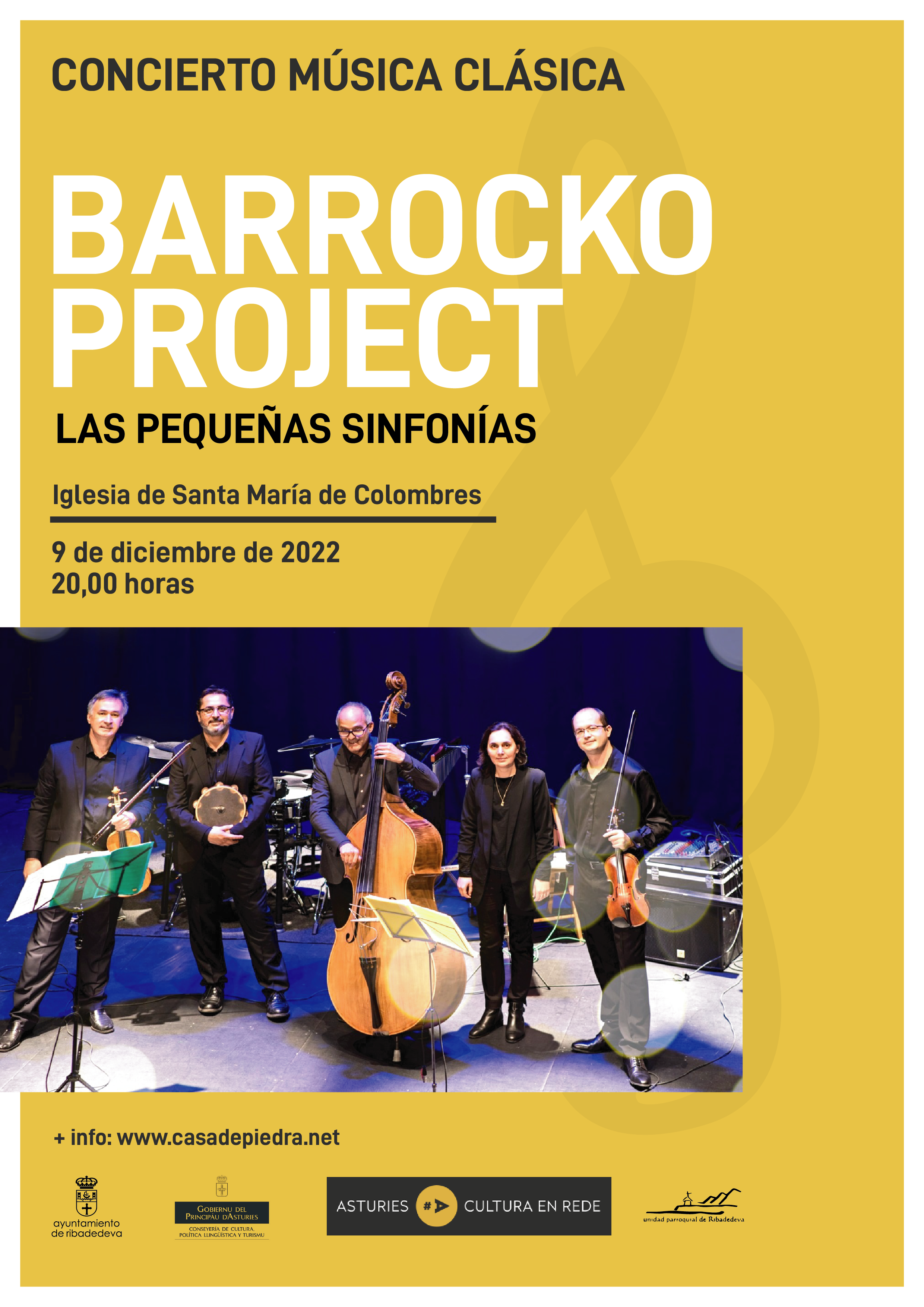 El próximo viernes 9 de diciembre a las 20,00 h. la Iglesia de Santa María de Colombres acoge el concierto Las pequeñas sinfonías a cargo del quinteto asturiano Barrocko Project organizado por el Ayuntamiento de Ribadedeva dentro del programa Asturias Cultura en Rede subvencionado por el Principado de Asturias y con la colaboración de la Unidad Parroquial de Ribadedeva . La entrada al concierto es libre hasta llenar el aforo de la sala.