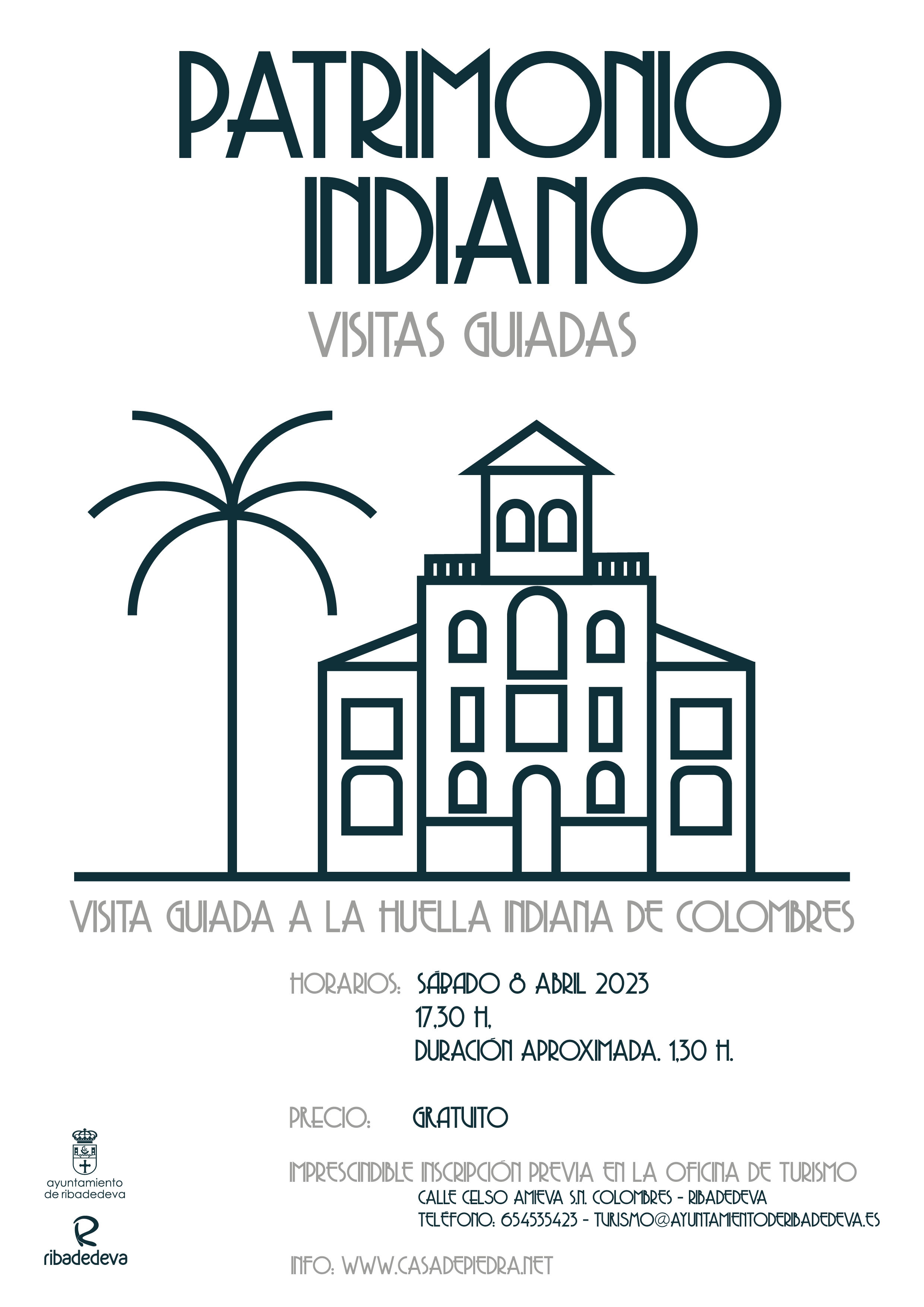 - Lugar: Salidas desde la entrada del Archivo de Indianos. Imprescindible inscripción en la Oficina de Turismo. 654535423- turismo@ayuntamientoderibadedeva.es