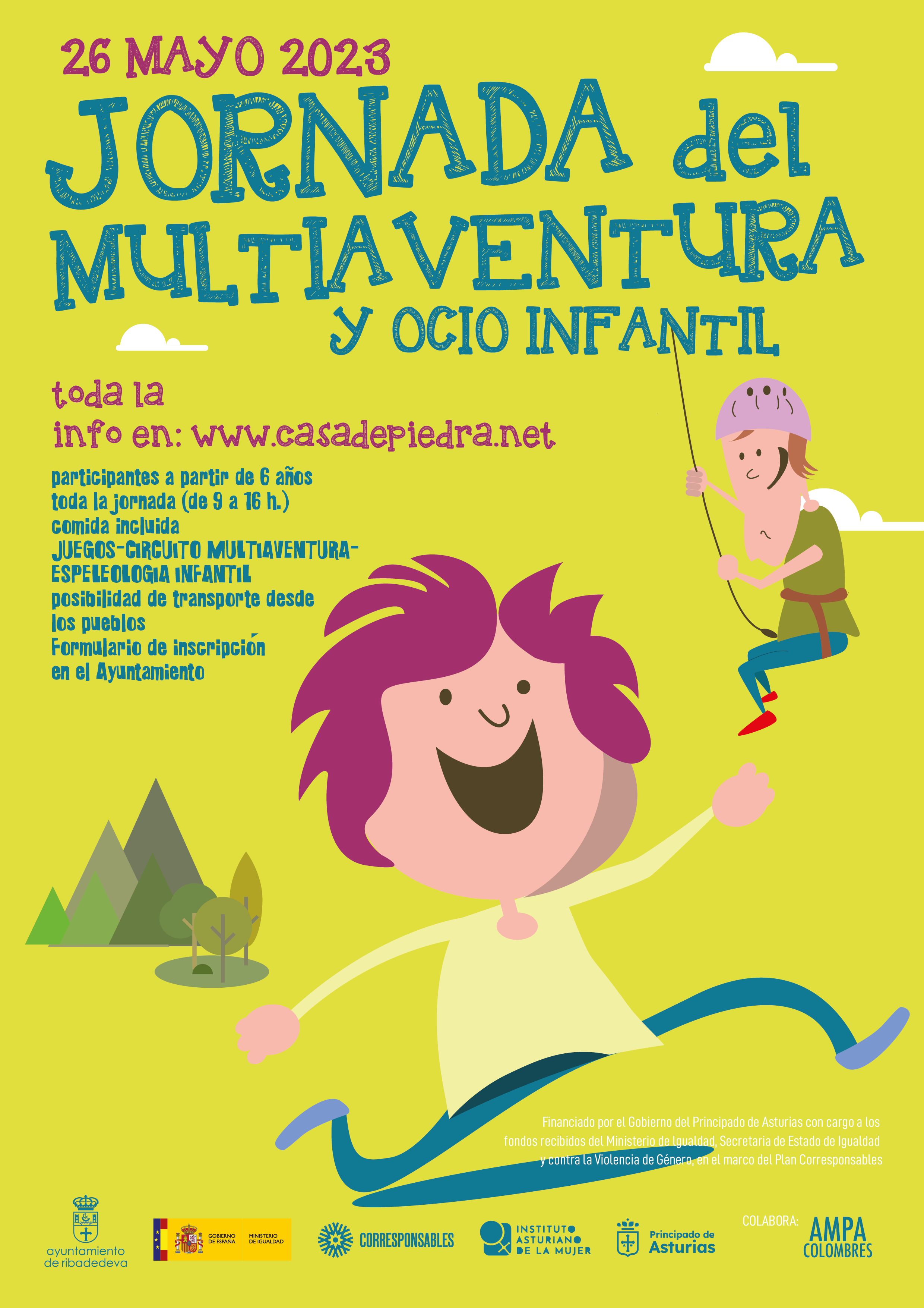 El próximo sábado 26 de mayo dentro del programa Corresponsables Ribadedeva, aprovechando la jornada no lectiva que está programada en el calendario escolar, se ha programado la celebración de una jornada de ocio y multiaventura infantil para participantes a partir de 6 años. La actividad tendrá lugar los en horario de 9,00 a 16,00 h. en las instalaciones del Albergue el Cantu (empresa que se encargará de desarrollar el proyecto).