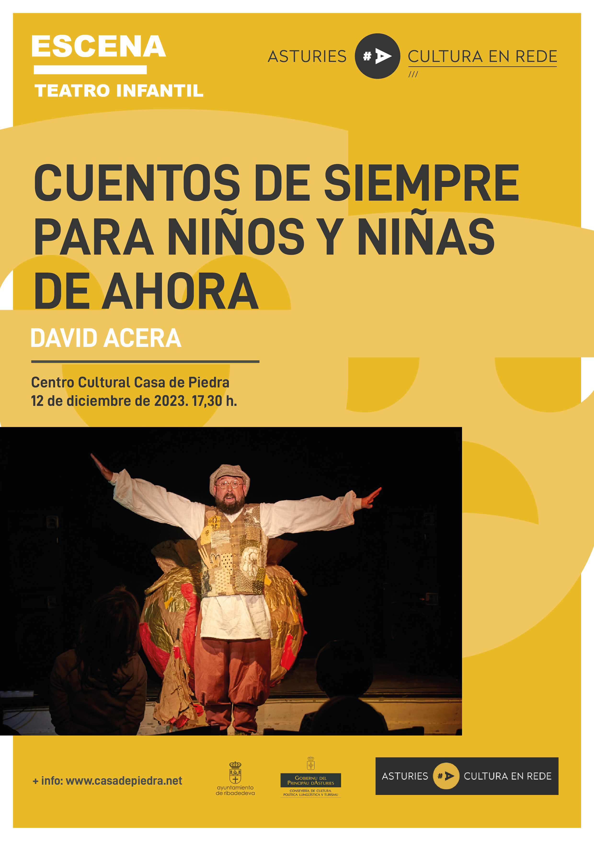 La Casa de Piedra acoge el próximo 12 de diciembre de 2023 a las Cuentos de siempre para niños y niñas de ahora a cargo de la compañía profesional asturiana David Acera.