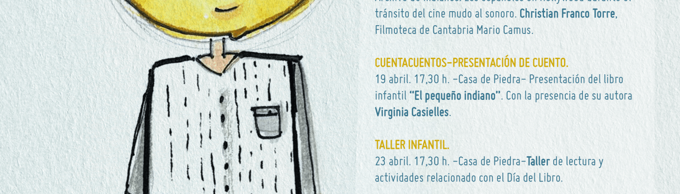CUENTACUENTOS PRESENTACIÓN DE CUENTO. 19 abril. 17,30 h. -Casa de Piedra- Cuentacuentos presentación del libro infantil “El pequeño indiano”. Con la presencia de su autora Virginia Casielles. (+ info.)