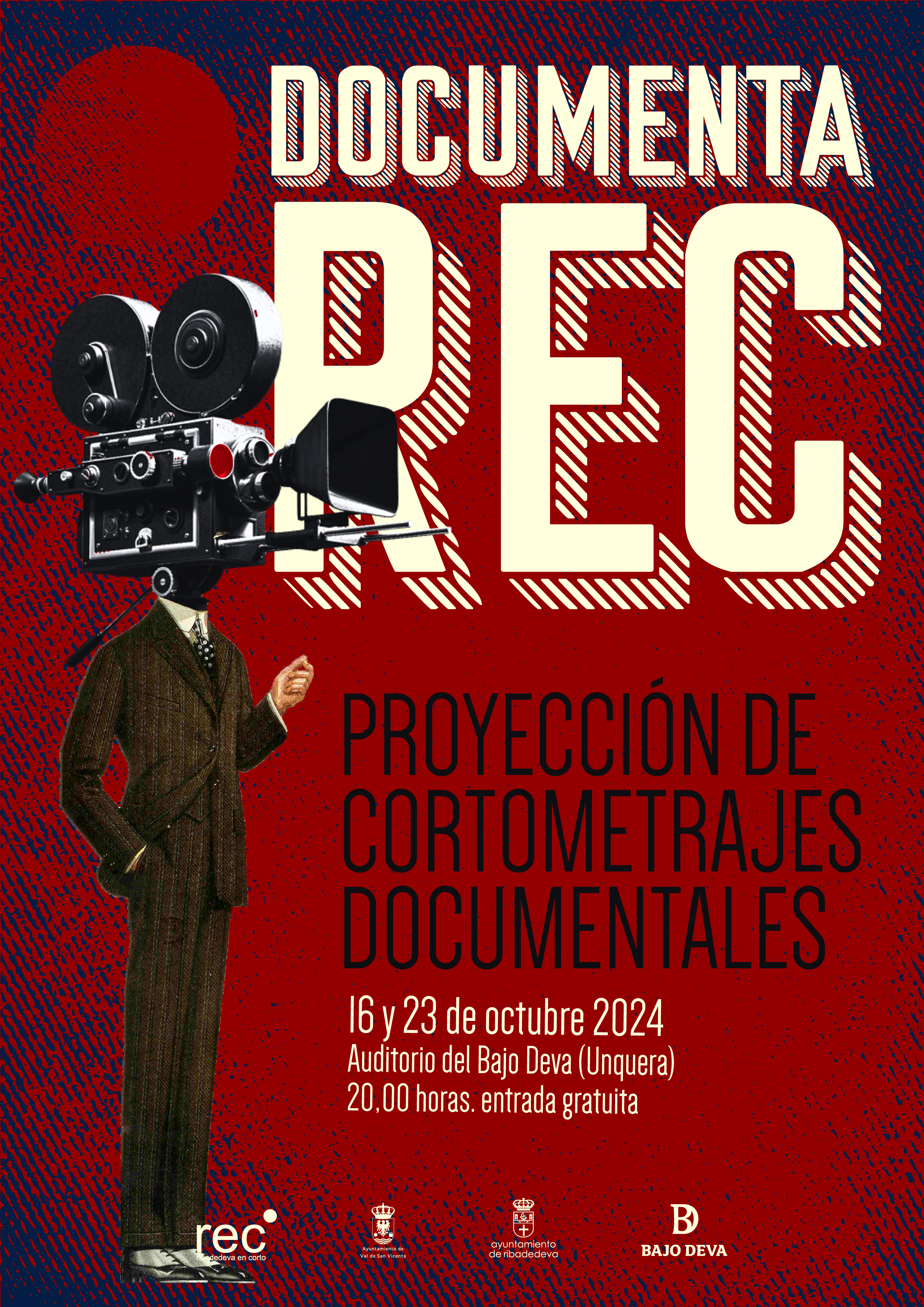 El Auditorio del Bajo Deva (Unquera) acoge los próximos miércoles 16 y 23 de octubre de 2024 a las 20,00 h. las proyecciones de la sección de documentales de Ribadedeva en Corto: DOCUMENTAREC. Se proyectarán un total de 9 películas a concurso.