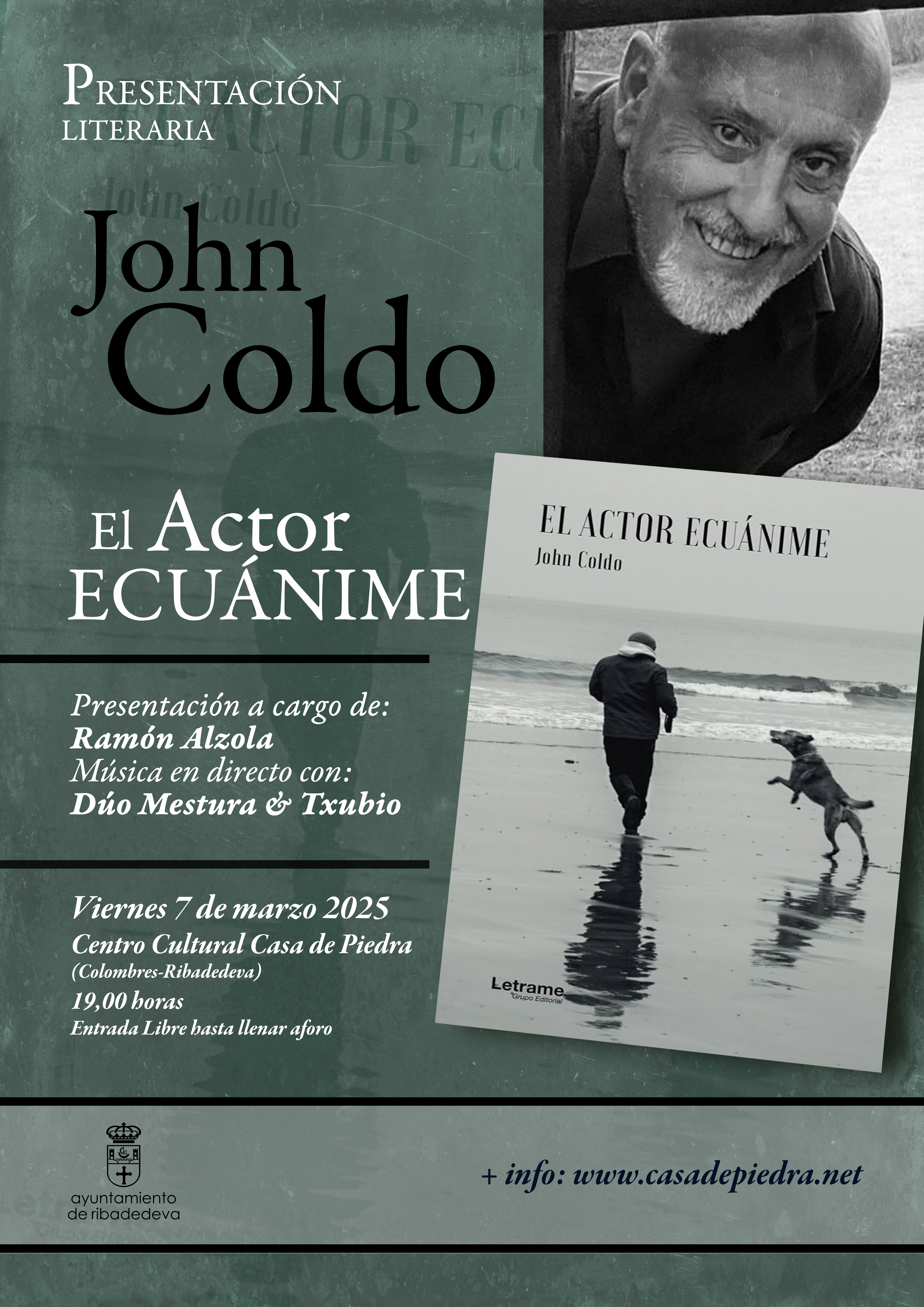 La Casa de Piedra acoge el próximo viernes 7 de marzo a las 19,00 h. la presentación la ópera prima de John Coldo, la novela El actor ecuánime. Se trata de una ficción que mezcla diversos géneros en la que el protagonista se ve envuelto en una trama de corrupción y lucha contra la fuerza global de las grandes corporaciones multinacionales.