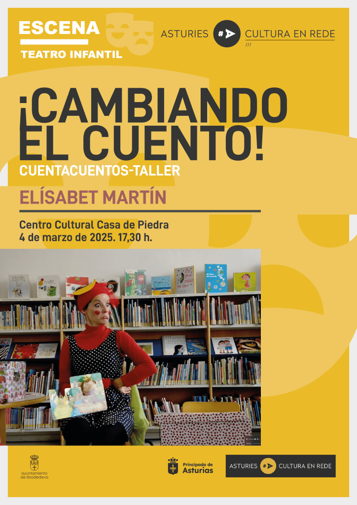 Dentro de las actividades con motivo del 8M 2025 La Casa de Piedra acoge el próximo martes de 4 de marzo de 2025 a las 17,30 h. la actividad ¡CAMBIANDO EL CUENTO! Taller: De cuentos tradicionales a cuentos con perspectiva de género, un cuentacuentos-taller a cargo de la compañía profesional asturiana Elísabeth Martín-Teatro.