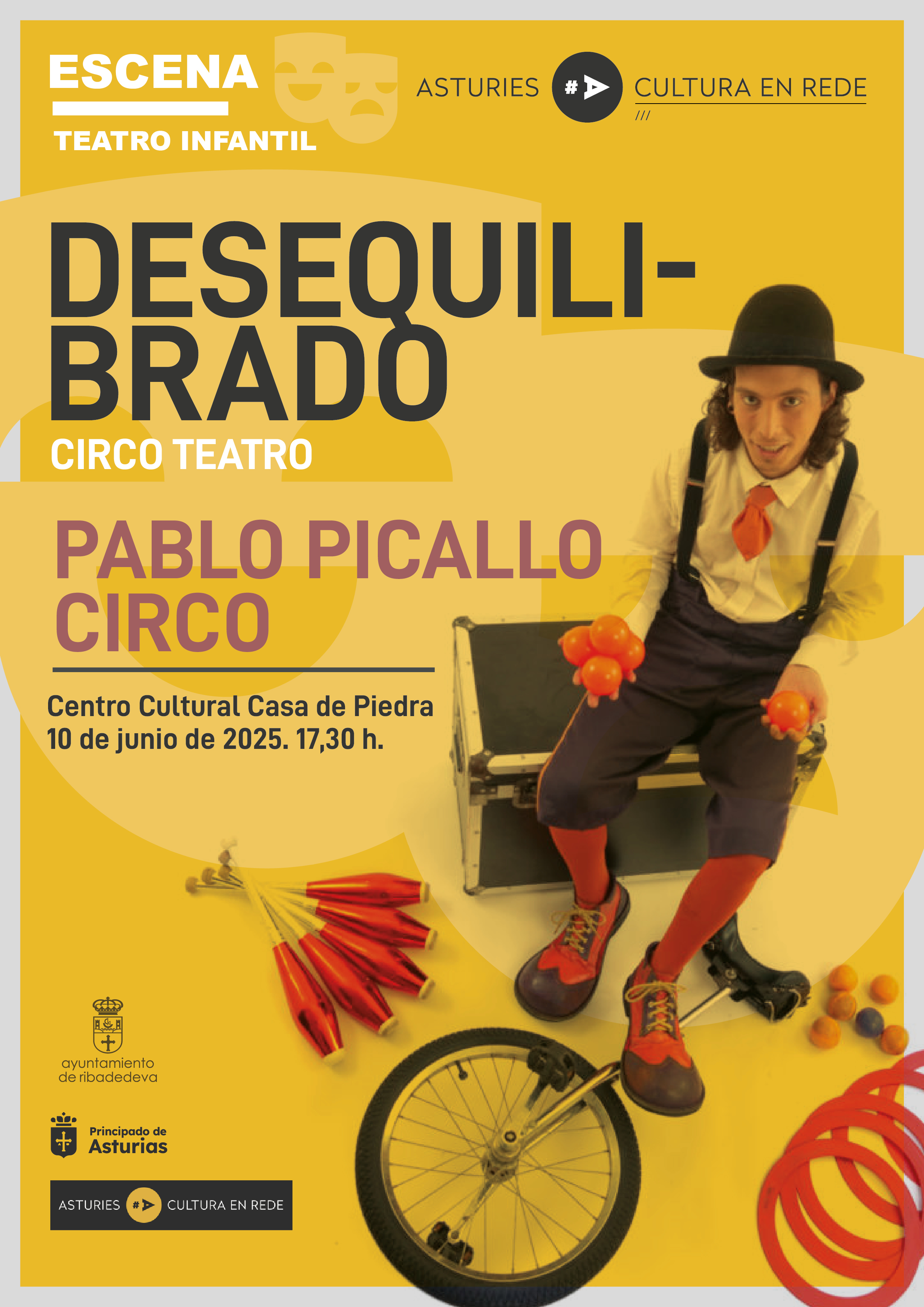 La Casa de Piedra acoge el próximo martes 10 de junio de 2025 a las 17,30 h. la actividad Desequilibrado a cargo de la compañía profesional asturiana Pablo Picallo Circo. Se trata de un espectáculo de teatro circo para público infantil y familiar .