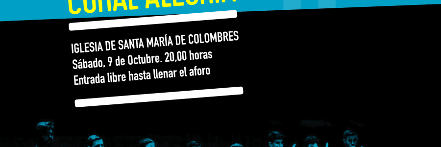 El próximo sábado 9 de octubre a las 20,00 h. la Iglesia de Santa María de Colombres acoge un concierto a cargo de la agrupación madrileña Coral Alegría organizado por el Coro Ribadedeva con la colaboración del Ayuntamiento de Ribadedeva. La entrada es libre hasta llenar el aforo de la sala, pero se recomienda contactar… Leer más La Coral Alegría canta en Ribadedeva el 9 de octubre.