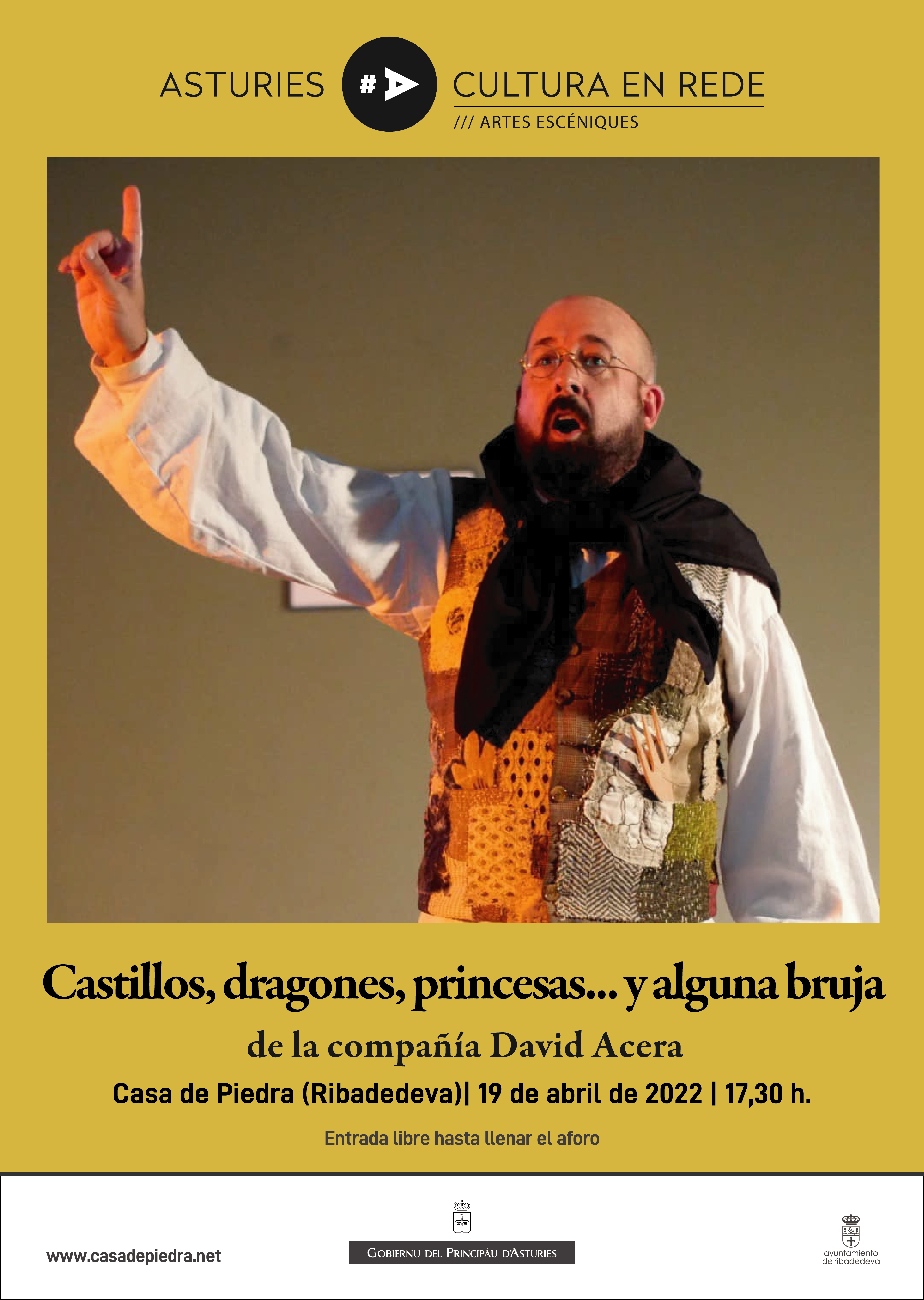 La Casa de Piedra acoge el próximo 19 de abril de 2022 a las 17,30 h. la obra Castillos, dragones, princesas… y alguna bruja a cargo de la compañía profesional asturiana David Acera.