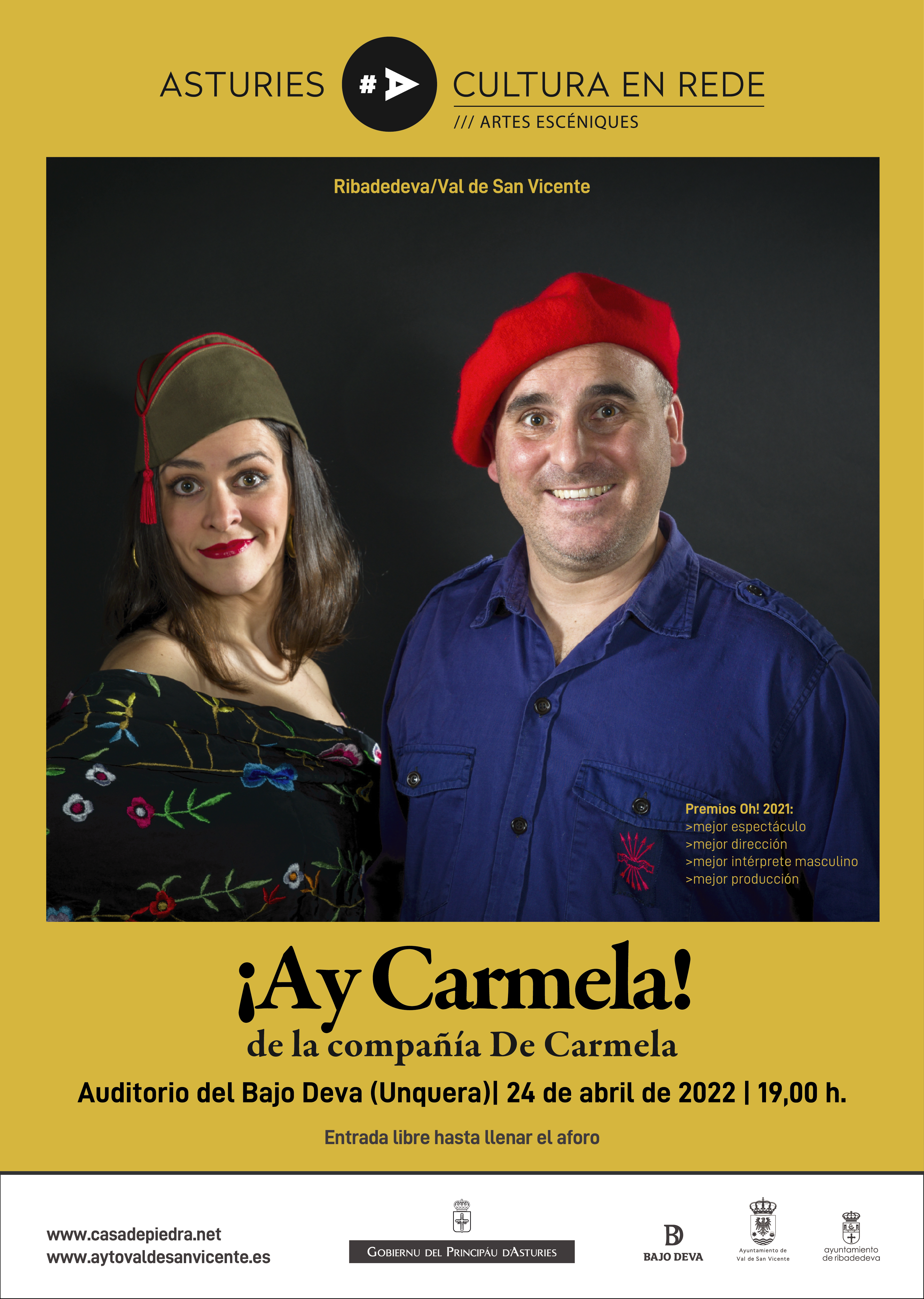 El Auditorio del Bajo Deva acoge el próximo 24 de abril de 2022 a las 19,00 h. la obra ¡Ay Carmela!Camino a cargo de la compañía profesional asturiana De Carmela.